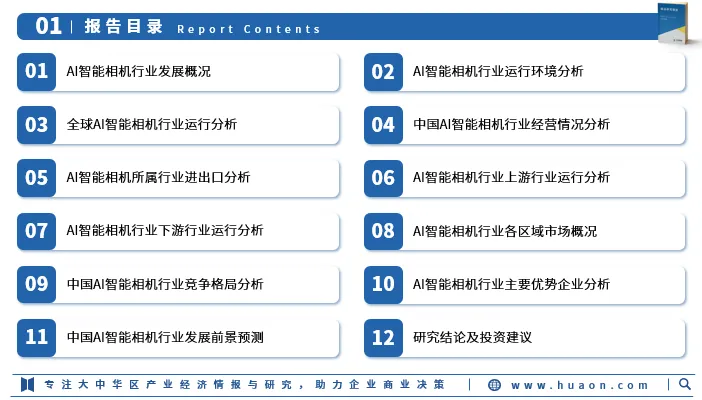 华经产业研究院为助力企业、科研、投资机构等单位了解AI智能相机行业发展态势及未来趋势,特重磅推出《2026-2032年中国AI智能相机行业发展全景监测及投资潜力评估报告》,本报告由华经产业研究院研究团队对AI智能相机行业进行多年跟踪研究,使用桌面研究与定量调查、定性分析相结合的方式,全面解读AI智能相机行业市场,深度挖掘行业潜在商机;科学运用研究模型,多维度对行业投资风险进行评估后精心研究编制。
