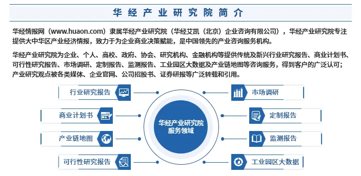 华经情报网隶属于华经产业研究院,专注大中华区产业经济情报及研究,目前主要提供的产品和服务包括传统及新兴行业研究、商业计划书、可行性研究、市场调研、专题报告、定制报告、工业园区大数据、产业链地图、专精特新申报及市场地位证明等。涵盖文化体育、物流旅游、健康养老、生物医药、能源化工、装备制造、汽车电子、农林牧渔等领域,还深入研究智慧城市、智慧生活、智慧制造、新能源、新材料、新消费、新金融、人工智能、“互联网+”等新兴领域。