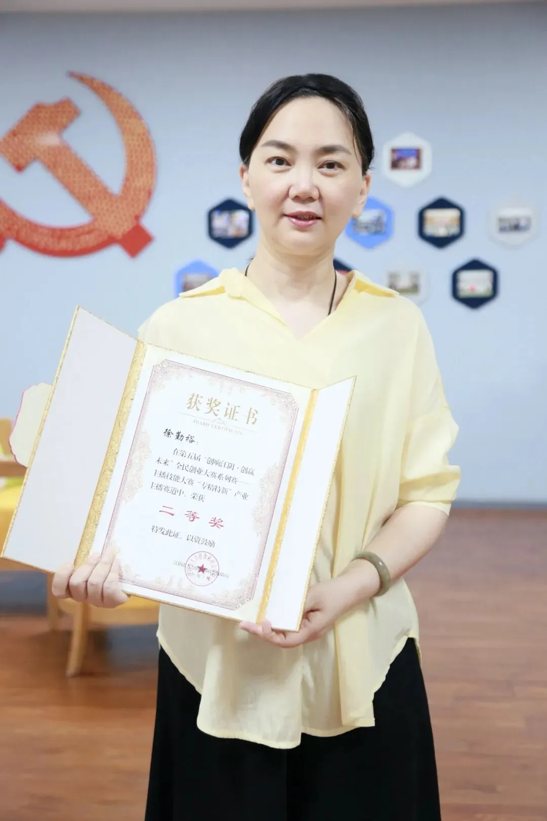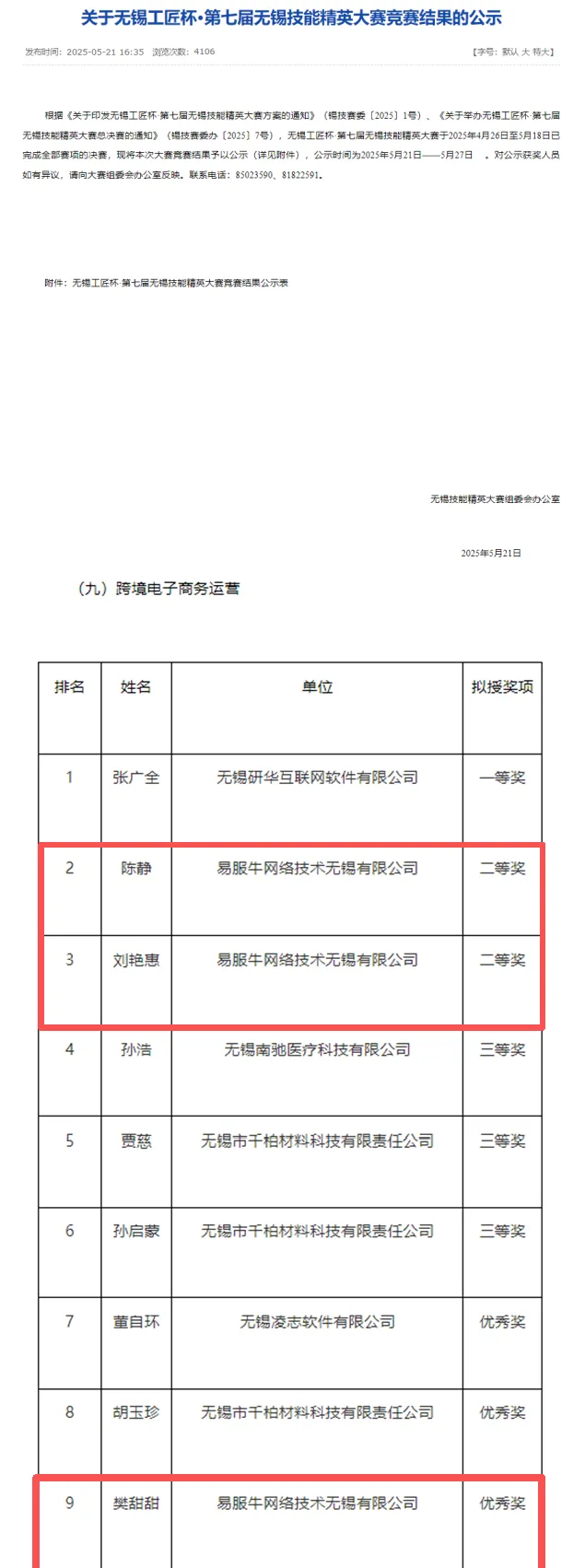 与此同时,园区注重人才引领、榜样带头,推选参赛,易服牛网络技术无锡有限公司陈静、刘艳惠、樊甜甜在无锡工匠杯·第七届无锡技能精英大赛竞赛中,荣获二等奖和优秀奖;江苏舜水行洲文化传媒有限公司总经理徐勤裕在第五届“创响江阴·创赢未来”全民创业大赛系列赛——主播技能大赛“专精特新”产业主播赛道中,荣获二等奖,为园区赢得了荣誉,为园区青年树立了优秀典型。