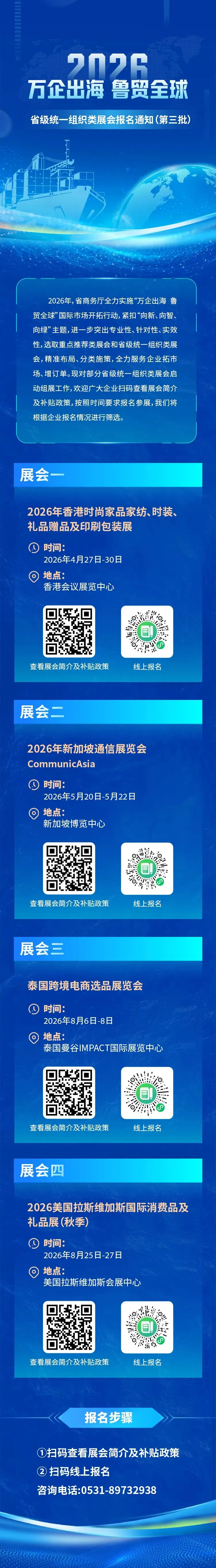 2026万企出海 鲁贸全球 省级统一组织类展会报名通知(第三批)