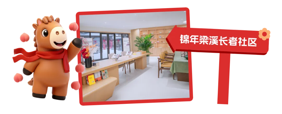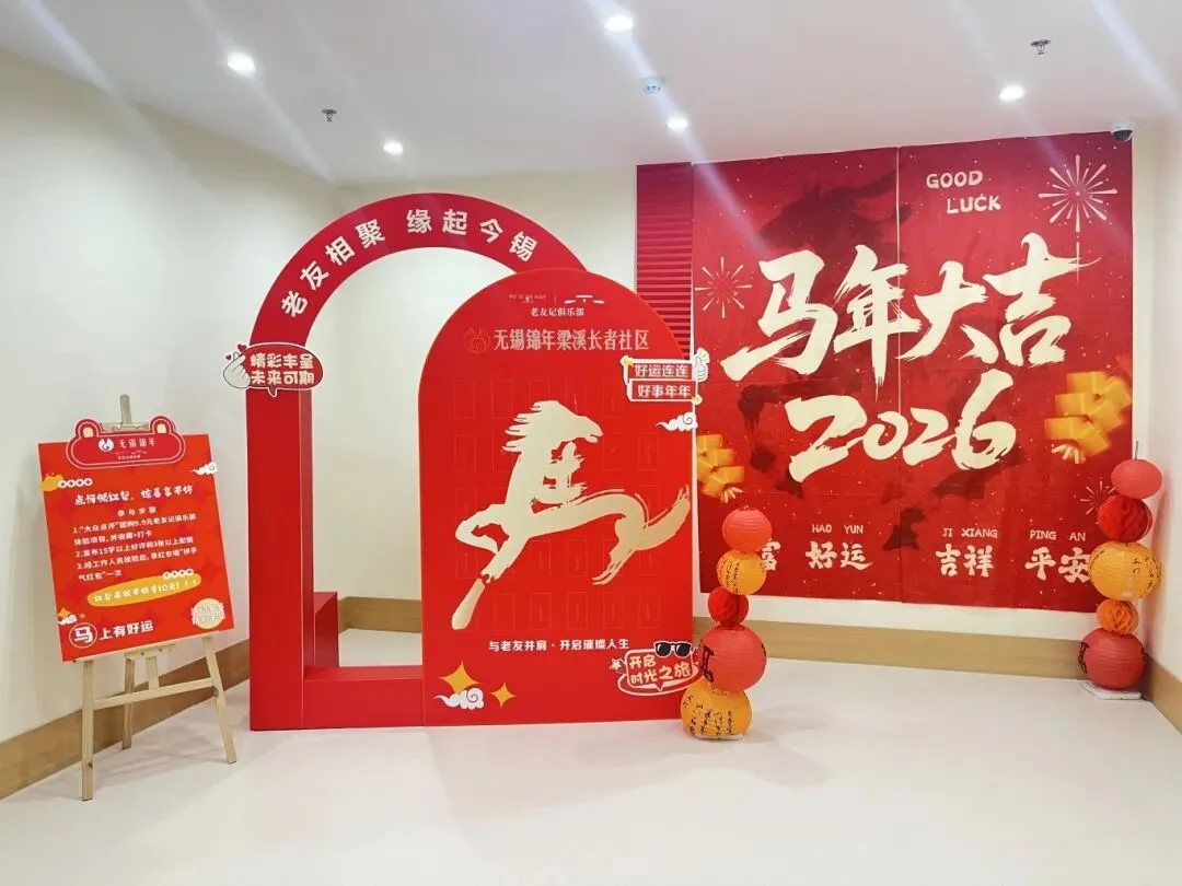 最后,桃气骏走进锦年梁溪长者社区桃气骏轻踏红毯与灯笼间老友相聚、欢声笑语春节氛围在温馨的养老空间中流淌