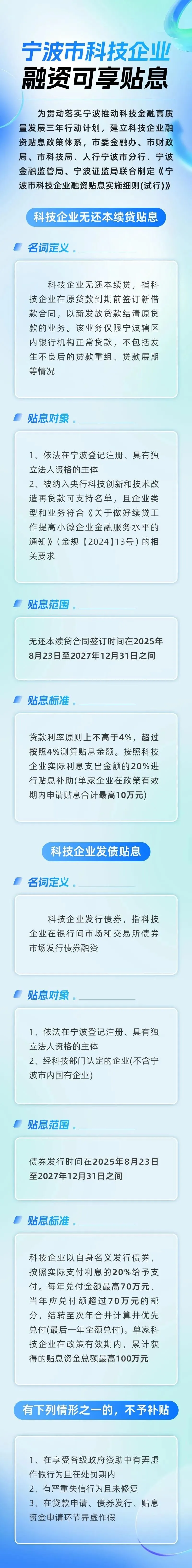 市委金融办相关处室负责人告诉记者,此次科技企业申请无还本续贷和发债贴息,无还本续贷合同签订时间和债券发行时间均为2025年8月23日至2027年12月31日。