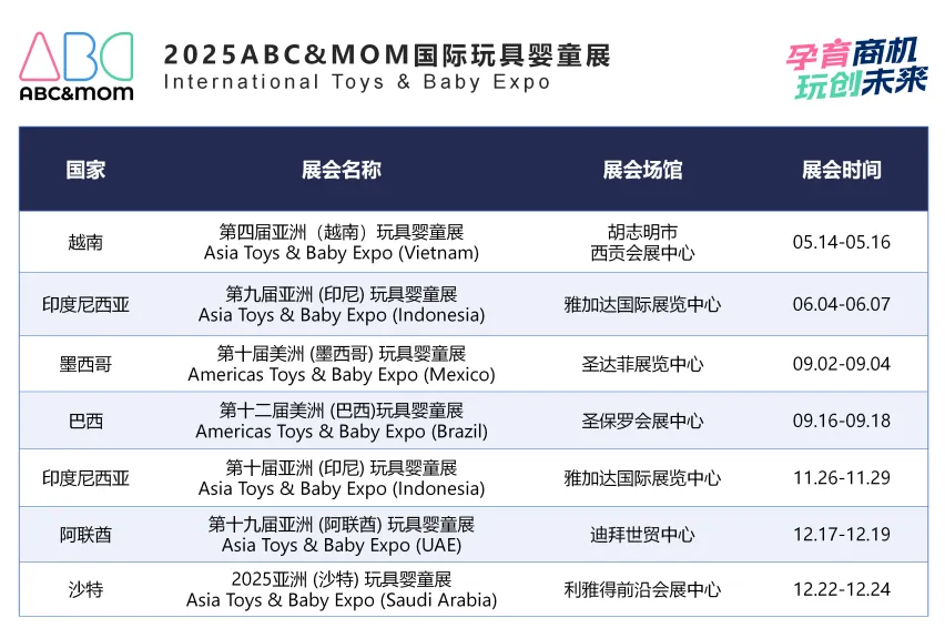 ABC&MOM国际玩具婴童展作为全球知名的玩具和婴童全渠道商贸服务平台,致力于推动和促进全球玩具和婴童产业的国际交流与贸易合作。