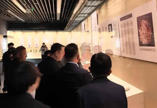 仪式结束后,全体人员在讲解员引导下,参观了“瑞羽和鸣——潍坊·安阳跨越时空的文明对话”展览及“瓷上吉光——馆藏吉祥纹饰瓷器新春专题展”。“瑞羽和鸣”展览汇聚了潍坊、安阳两地10家文博单位的200余件(套)珍贵文物,涵盖甲骨卜辞、青铜礼器、玉石礼器、陶器、骨器等多个品类,其中安阳殷墟出土的刻辞甲骨、青铜爵、玉璧等文物,更是首次在潍坊市集中展出,极具观赏性和研究价值。展览以“夷商礼同”“干戈扩疆”“器以藏礼”三大板块为核心,创新采用“典籍记载+文物实物+对比展示+多媒体解读”的方式,生动呈现了东夷文化与殷商文明在礼制、生产、生活等方面的交融互鉴,让观众得以跨越三千年多时光,直观感受中华古代文明的博大精深与独特魅力。