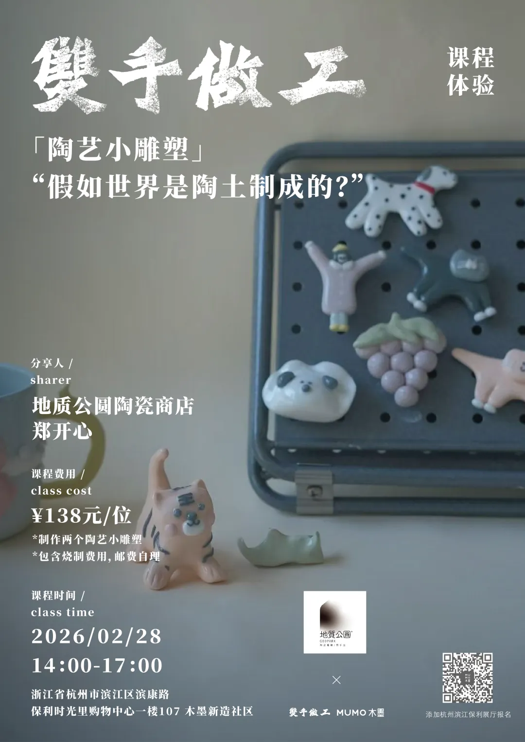 2月28日展览首日,郑开心将亲自带领陶艺小雕塑课程,让创作的过程在你手中展开。