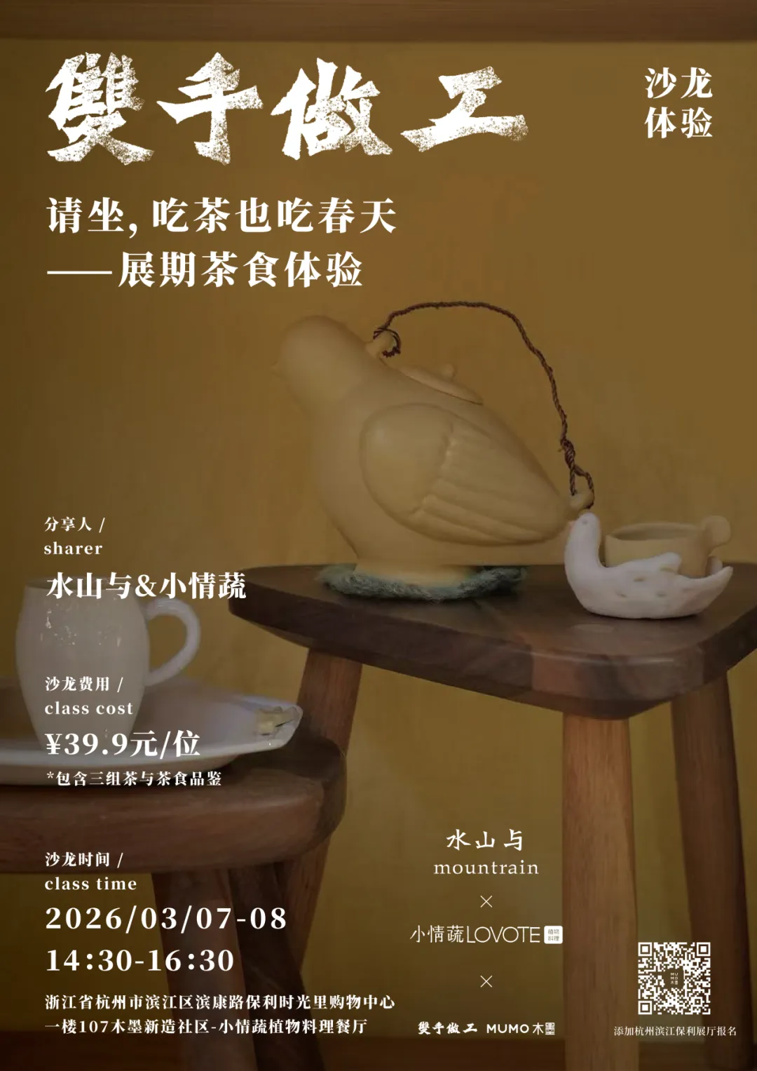 3月7日-8日,水山与茶食体验活动,我们将使用本次展览的器物盛装春日滋味,在使用中体会器皿之于生活的真实角色。