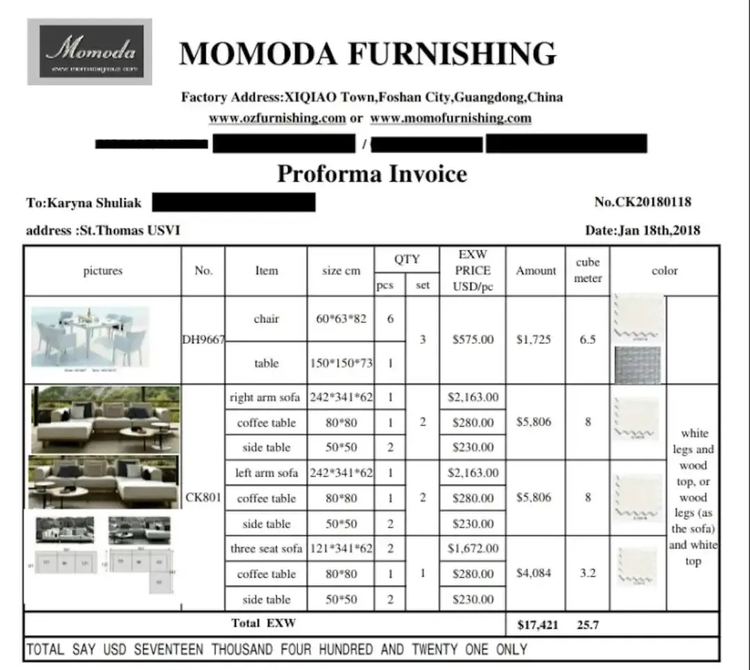拼箱到圣托马斯岛的运费是3638美元,但拼箱会和其他公司的货物同装一个集装箱,无法把控其他货物的类型,家具很容易在运输过程中受损;而单独发一个20英尺集装箱到夏洛特阿马利亚的运费是6500美元,虽成本更高,但能最大程度保护家具,还贴心询问对方选择哪种运输方式,是否由对方自行安排物流。
