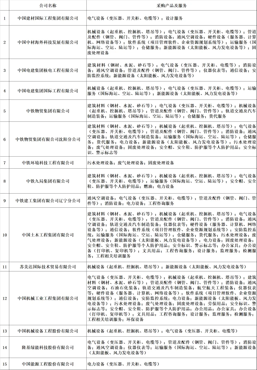 截至目前,已有31家央企及行业龙头企业采购商来沈参会,采购商品包括工程建设、装备制造、环保设备及服务咨询等9大类33个小类。对接会日程安排: