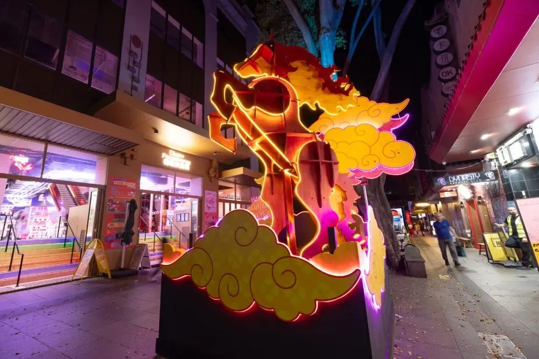 这是一组由悉尼本地 3D 艺术家Erika Zhu设计的12只生肖灯笼,充满童趣和现代感的造型把十二生肖一一呈现,在夜色中点亮 Chinatown 的街头。灯光柔和、色彩丰富,有红色的好运象征,也有翡翠绿的清新感,走在灯下不仅好拍照,还会莫名被治愈??。