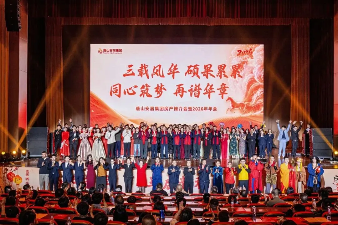 岁序更替,华章日新。2026年2月11日,唐山安居集团房产推介会暨2026年新春年会璀璨启幕。来自塞纳公馆、天华悦府、云鼎观唐业主与集团领导、员工、家属齐聚一堂,共庆三载奋斗硕果,共赴马年锦绣征程。