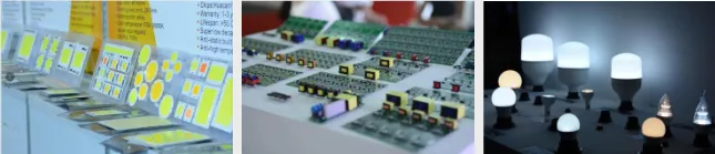 元器件及材料:LED 灯饰零配件、LED 基板、LED 晶片、反射板、反射性材料 、光学膜、偏光板、驱动 IC、LSI 控制器、其它封装元件及材料等;