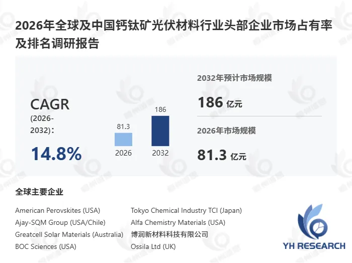 以下内容来自恒州诚思YHResearch出版的《2026年全球及中国钙钛矿光伏材料行业头部企业市场占有率及排名调研报告》,同时提供英文,日文,韩文等不同语种版本报告。
