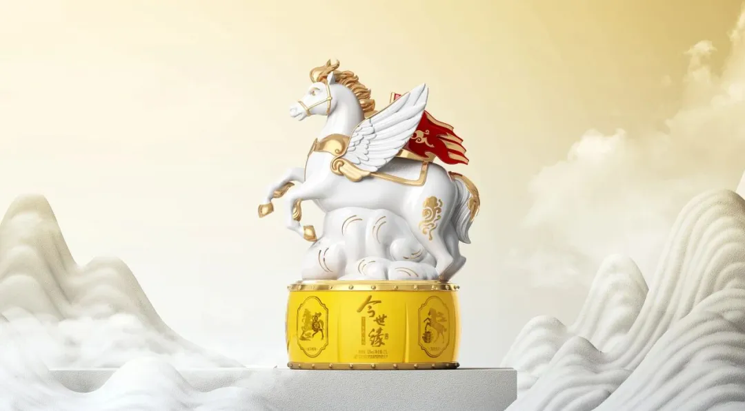 国窖1573定制酒-马青云同样由设计师张朝阳操刀,突破生肖酒常规马形范式,以国际象棋“棋马”为灵感,瓶身呈数字“1”之姿,暗合“一马当先”进取意象。产品联手国瓷永丰源,施非遗青釉瓷工艺,将千年酒脉与当代美学相融,传递“勇立潮头”的品牌主张。