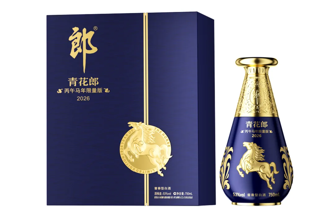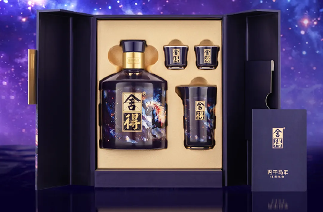 舍得丙午马年生肖酒全渠道限量发售10万盒。酒体以“柔和张力、甘甜交织果粮香、尾韵悠长”为品评特征。设计层面首度采用光刻工艺材质,瓶身纹样折射动态流光,与五行“丙午”对应蓝紫色系并置,以“光”与“火”呼应“紫气东来”之寓,实现传统生肖符号与新材料美学的叠印表达。