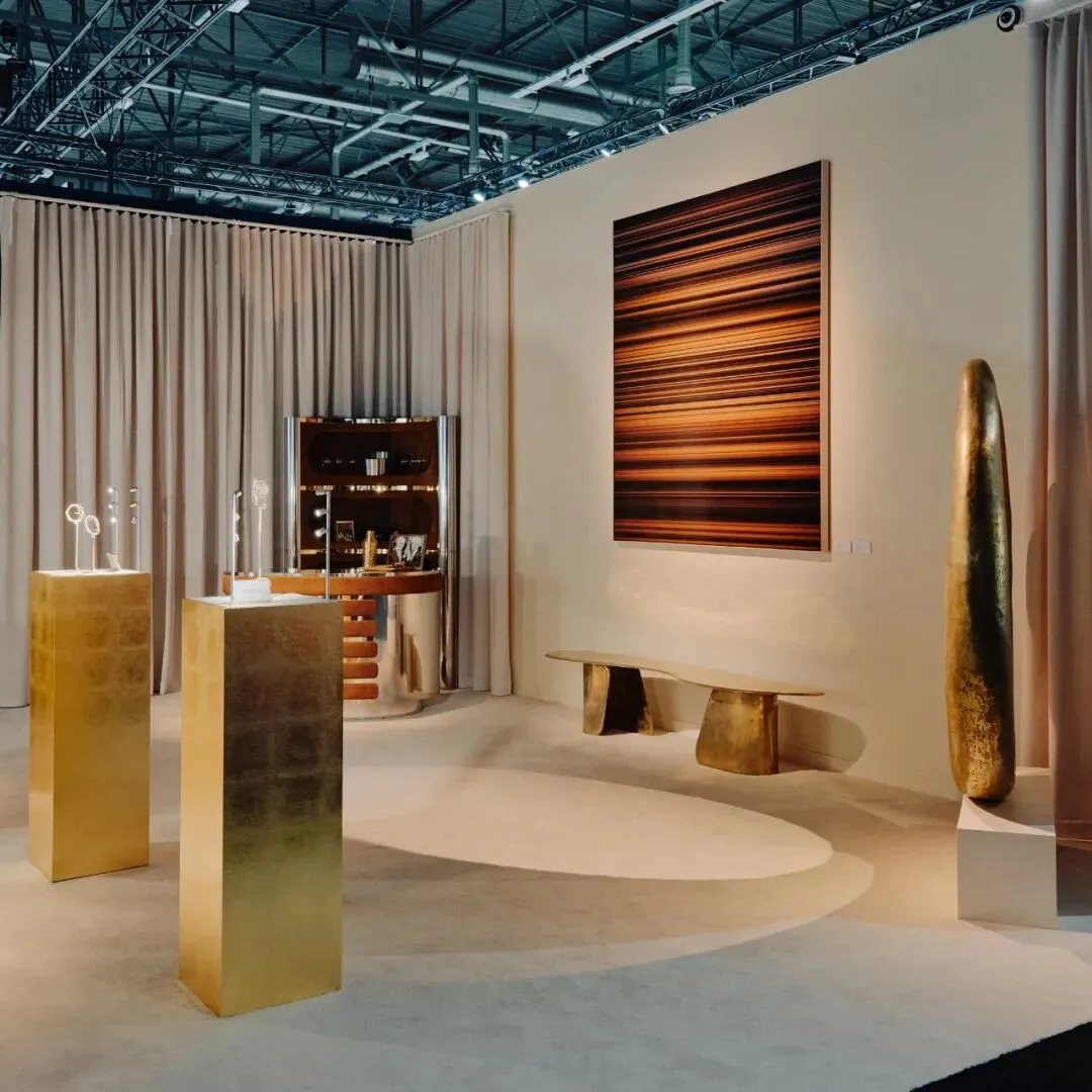 通过与艺术界新锐力量携手合作,PIAGET伯爵再次彰显其深厚艺术底蕴、立体造型美学与先锋精神。值得关注的是,PIAGET伯爵与Scene Ouverte画廊展开密切合作。该画廊一直致力于推动当代艺术创作,大力推崇法国Métiers d'Art大师工艺。此次,画廊展出了由弗朗西斯科·阿尼奥特(Francisco Aniorte)匠心打造的《薄雾》(Boira)桌台。该作品采用漆面精钢材质打造,并饰以手绘陶瓷瓷砖,在材质的碰撞中尽显独一无二的艺术魅力。PIAGET伯爵亦携手专注于巴西历史及现代设计收藏的巴西现代主义画廊(Brazil Modernist Gallery)。此次,该画廊于PIAGET伯爵展区中呈现了艺术家卢卡斯·雷基亚(Lucas Recchia)的青铜长椅《Morfa No.9》,以及设计大师卡洛·豪纳(Carlo Hauner)于1950年创作的经典扶手椅,共同构成一段穿越时间的设计对话。