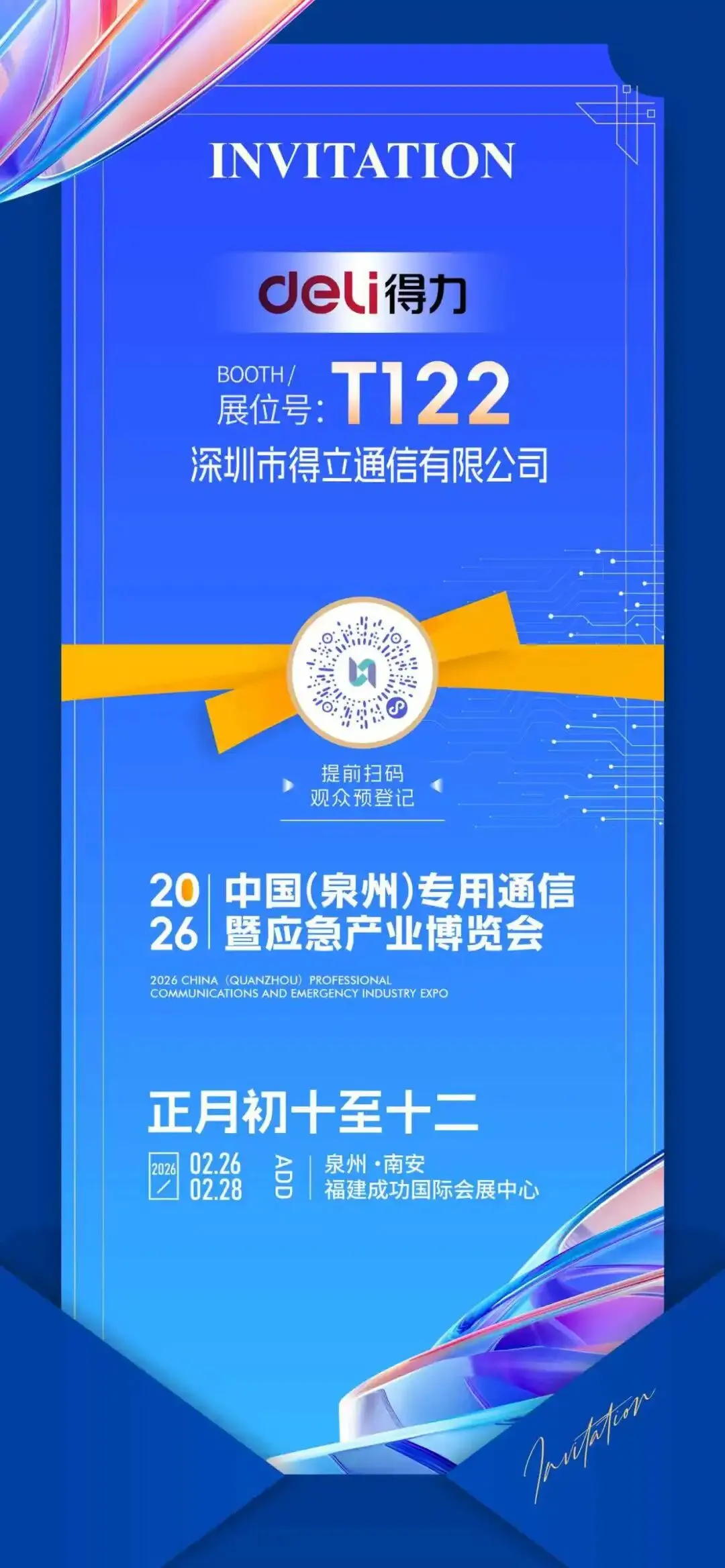 马年新程,万象更新!2026 中国(泉州)专用通信暨应急产业博览会即将启幕,深圳市得立通信有限公司将携得力品牌核心产品亮相展会,诚邀您莅临展位 T122,共探行业新机遇,共话合作新未来!