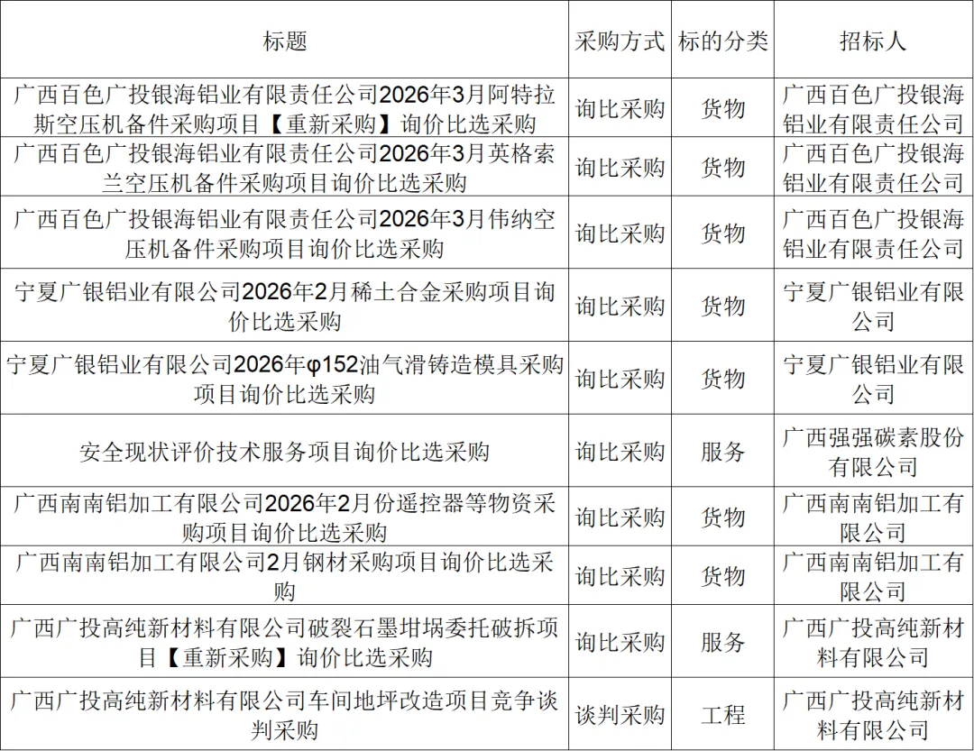 ●招采信息丨广投集团电子采购平台招标采购信息(2月9-11日)