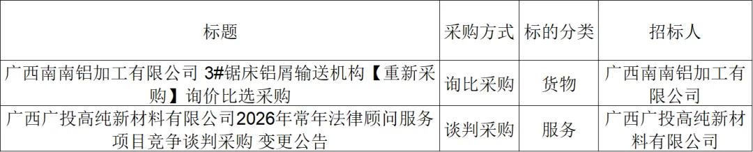 ●招采信息丨广投集团电子采购平台招标采购信息(1月30-2月1日)