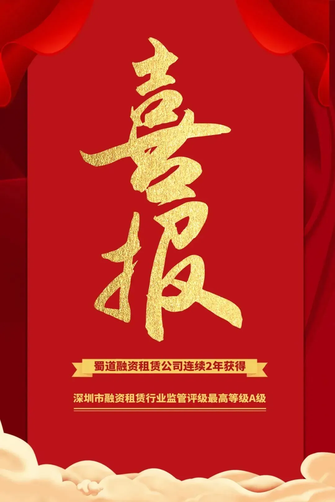 在深圳市地方金融管理局公布的2025年度深圳市融资租赁行业监管评级结果中,蜀道融资租赁公司凭借卓越的公司治理能力和出色的经营业绩,再次获得最高等级“A级”评级。自深圳市监管机构开展评级工作以来,公司始终荣获了最高评级。