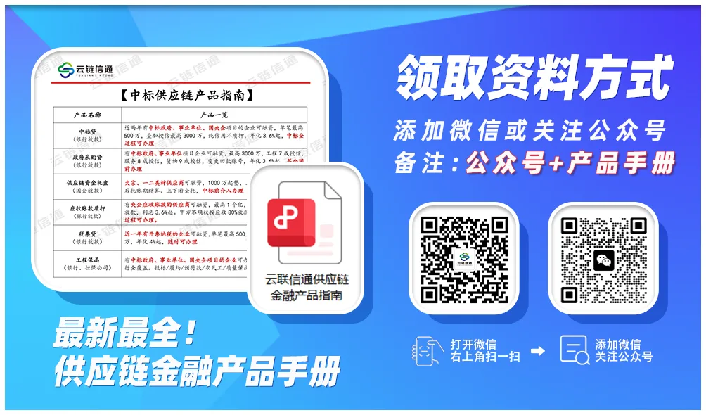 若你正受账款困扰,需要了解贵司是否符合准入条件,想要了解更多融资细节,可扫码关注公众号 “云链信通”,或扫码添加客服微信,获取专属融资经理咨询服务,为您提供一站式的专业融资定制方案,欢迎留言咨询。