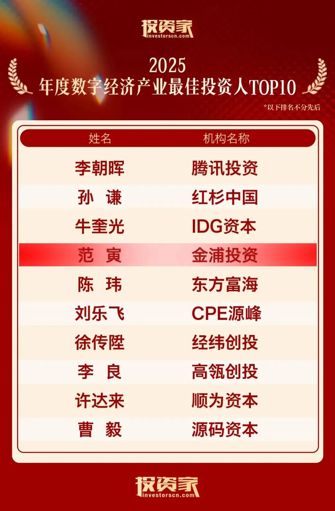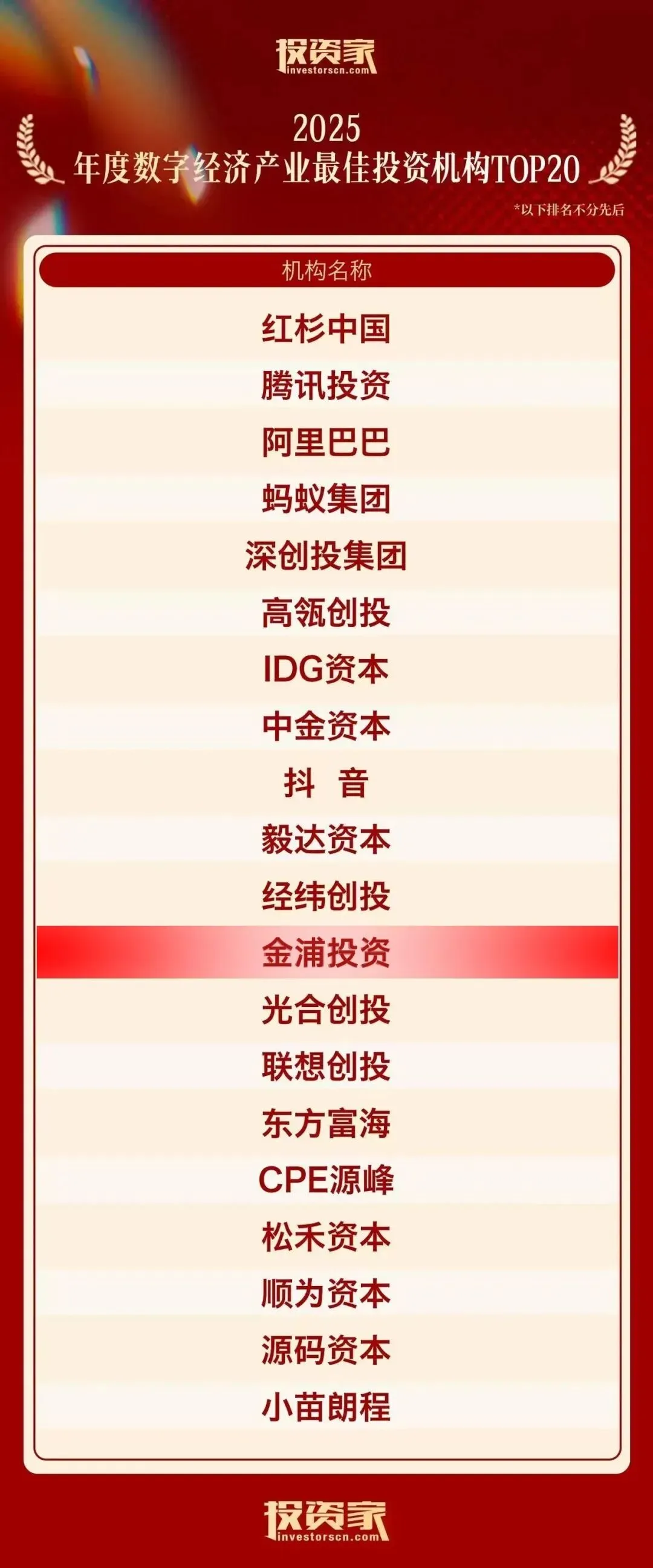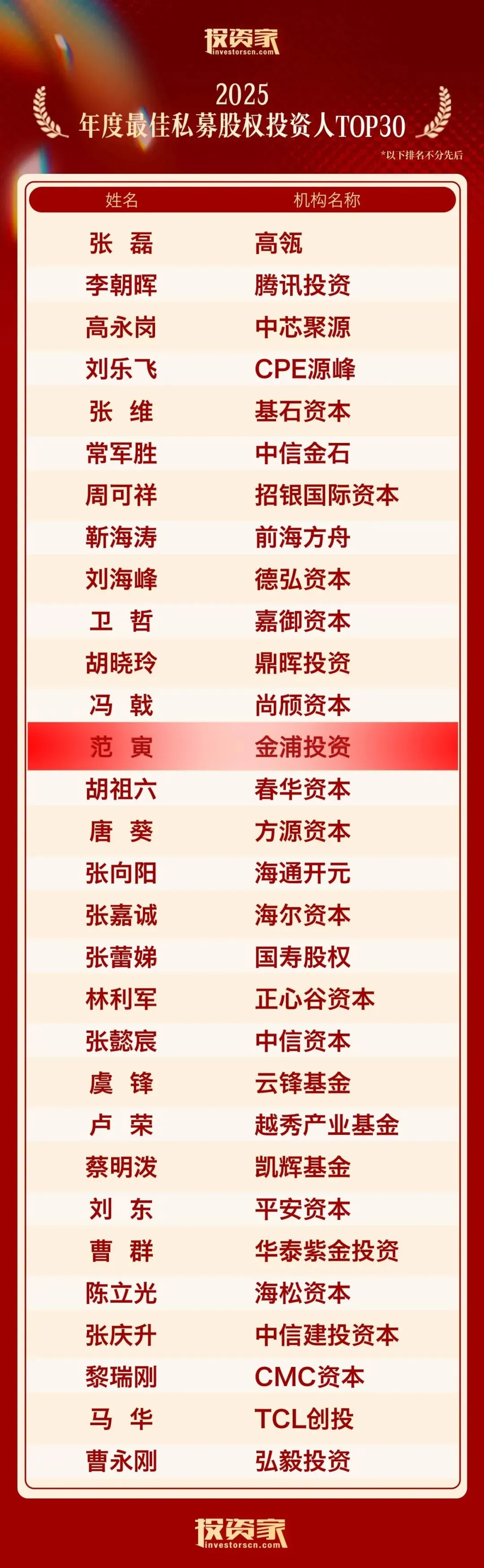 1月29日,投资家网正式揭晓「2025股权投资年度榜单」,金浦投资荣获“2025年度最佳私募股权投资机构TOP50”,同时,总裁范寅荣获“2025年度最佳私募股权投资人TOP30”等奖项。