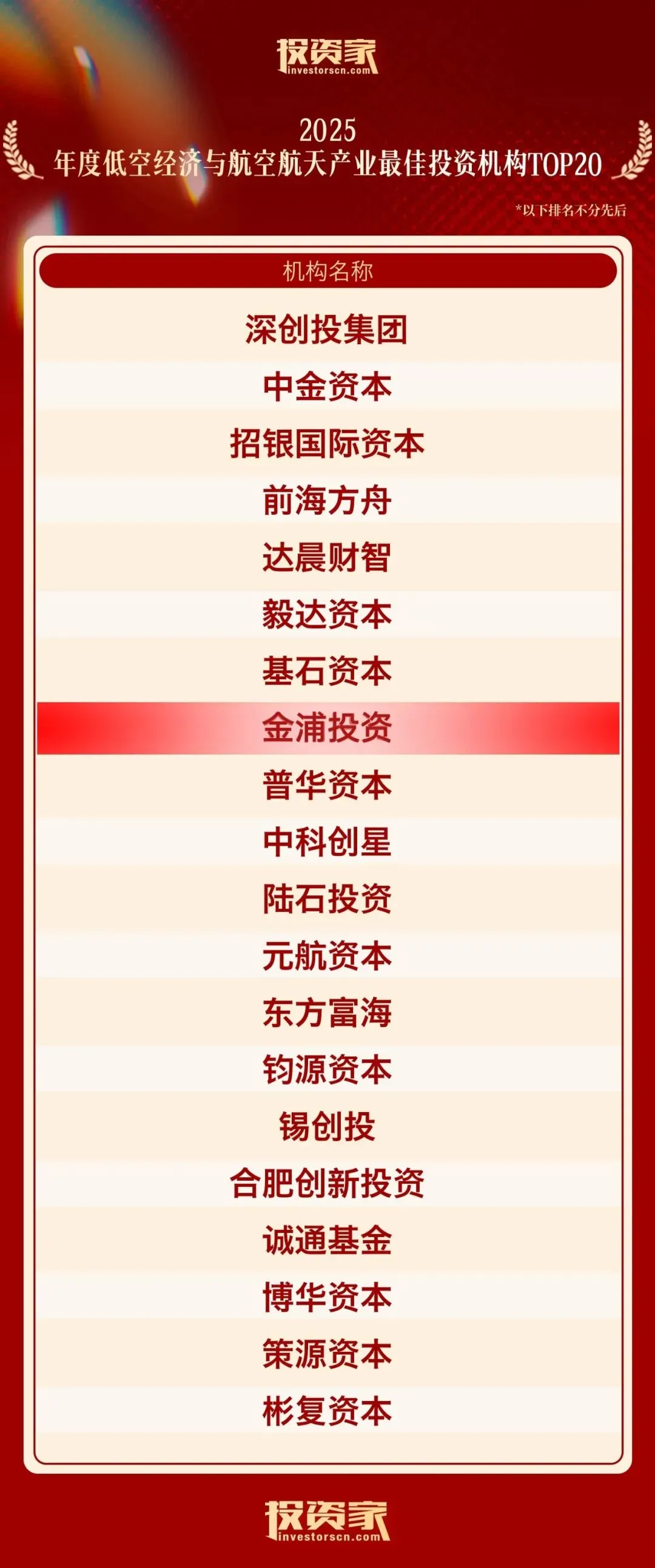2025年度低空经济与航空航天产业最佳投资机构TOP20