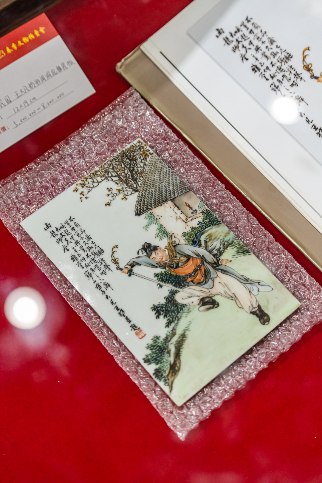 拍品区展品共有600件,现场展出了满绿翡翠套装;“珠山八友”王大凡的粉彩瓷板绘《闻鸡起舞》、刘雨岑的粉彩花鸟纹笔筒等不可多得的八友艺术珍品;唐小禾的版画《中山舰》、徐本一的对联、昌明大师的阐书等湖北籍书画名家名作,并在艺术品拍卖会活动中被艺术品爱好者和藏家们成交收藏。