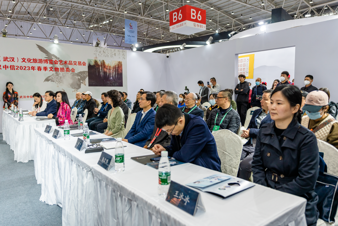 第二届中国(武汉)文化旅游博览会艺术品交易会暨武汉中信2023春季文物拍卖会于4月22日下午2点在艺术品交易会现场举锤,经过数小时的鏖战后圆满收官。