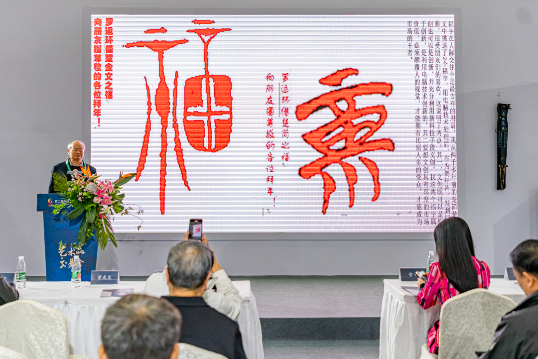香港湖北社团总会副会长金玲分享了中外文化艺术交流以及香港艺术品交易市场的最新咨询;原文化和旅游部恭王府管理中心主任鲁宁就民间收藏着关心的热门问题提出看法;湖北省文化遗产学会会长姚伟钧发表了文化遗产与中华优秀文明资源的独特见解;中国民族史学会副会长刘玉堂从“如何开拓艺术品交易的世界眼光”为切口,浅谈了荆楚文化与湖北文化产业发展研究;中国先秦史学会副会长罗运环,以“从两个福字谈文创品市场”为主题展开分享。