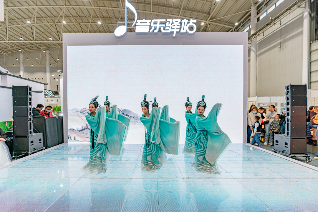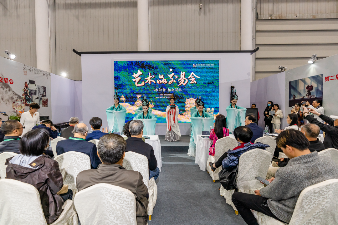 观展之余,环境舞蹈、民乐小合奏等精彩演出在艺术品交易区的“国风雅乐”音乐驿站每天上演,省歌剧舞剧院带来了《茉莉花》《渔舟唱晚》《高山流水》等经典古风民乐,湖北艺术职业学院带来了沉浸式女子群舞《山河引》,引得现场观众阵阵掌声。