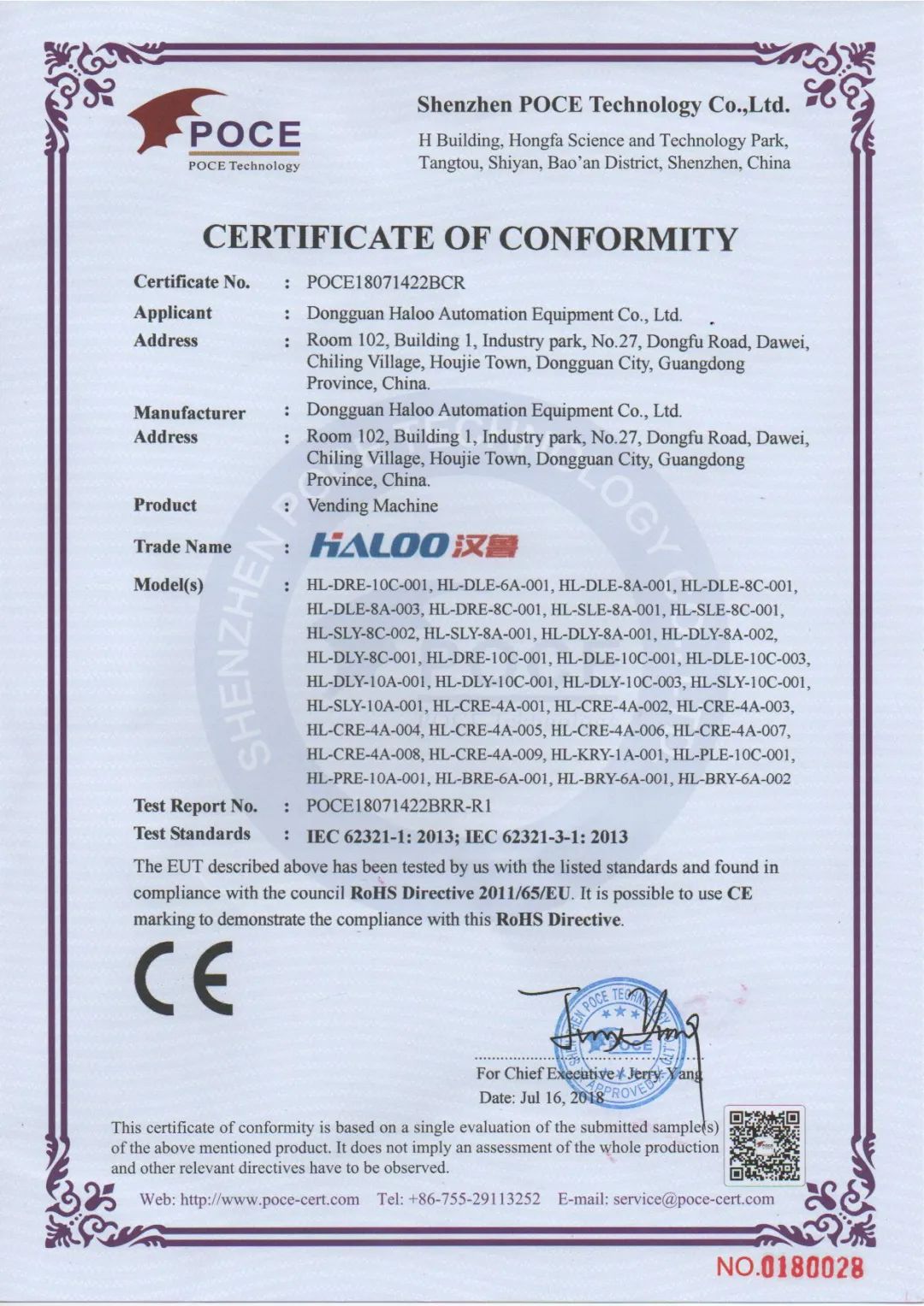 东莞市汉鲁自动化设备有限公司(Dongguan Haloo Automation Equipment Co.,Ltd)是目前国内较大的自助智能设备制造商之一,是亚太自助售货行业联合会(APVA)会员单位,是国家高新技术企业、国家进出口企业,专业的自动售货机设计者和制造者。产品类型有饮料零售自动售货机,冰淇淋自动售卖机,披萨自动售卖机,鲜花自动售卖机,棉花糖自动售卖机以及爆米花自动售卖机等,多种定制型的细分产品。