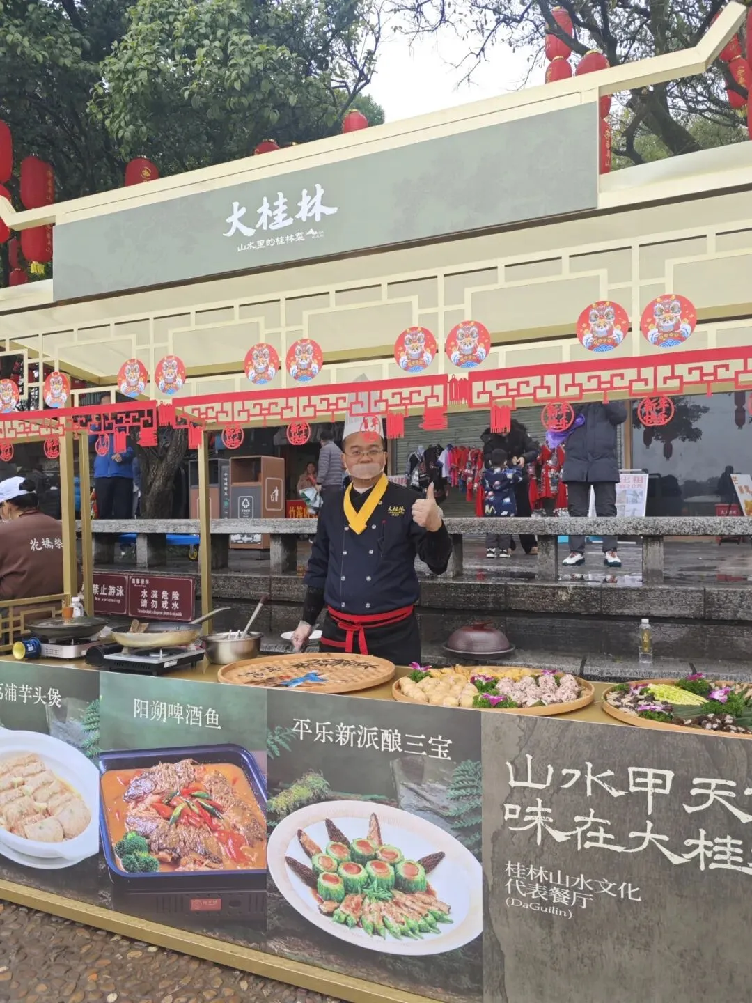 本次旅圩集市以桂林年味为主题,汇聚了桂林特色美食、非遗文创与民俗体验。