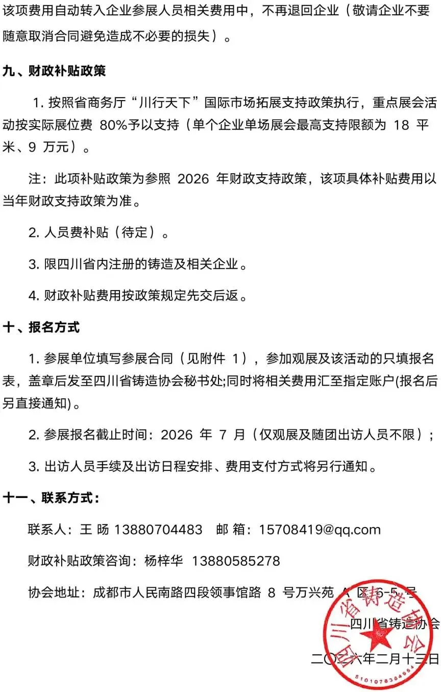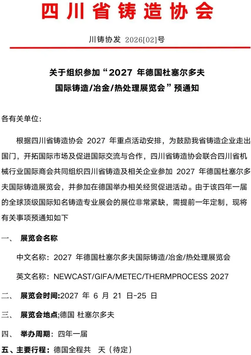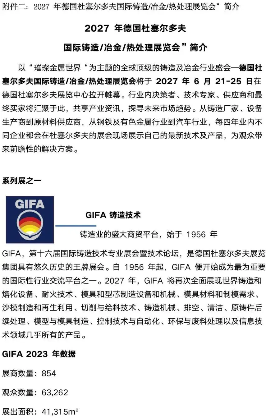 展会通知 ︳组织参加2027年德国国际铸造展预通知