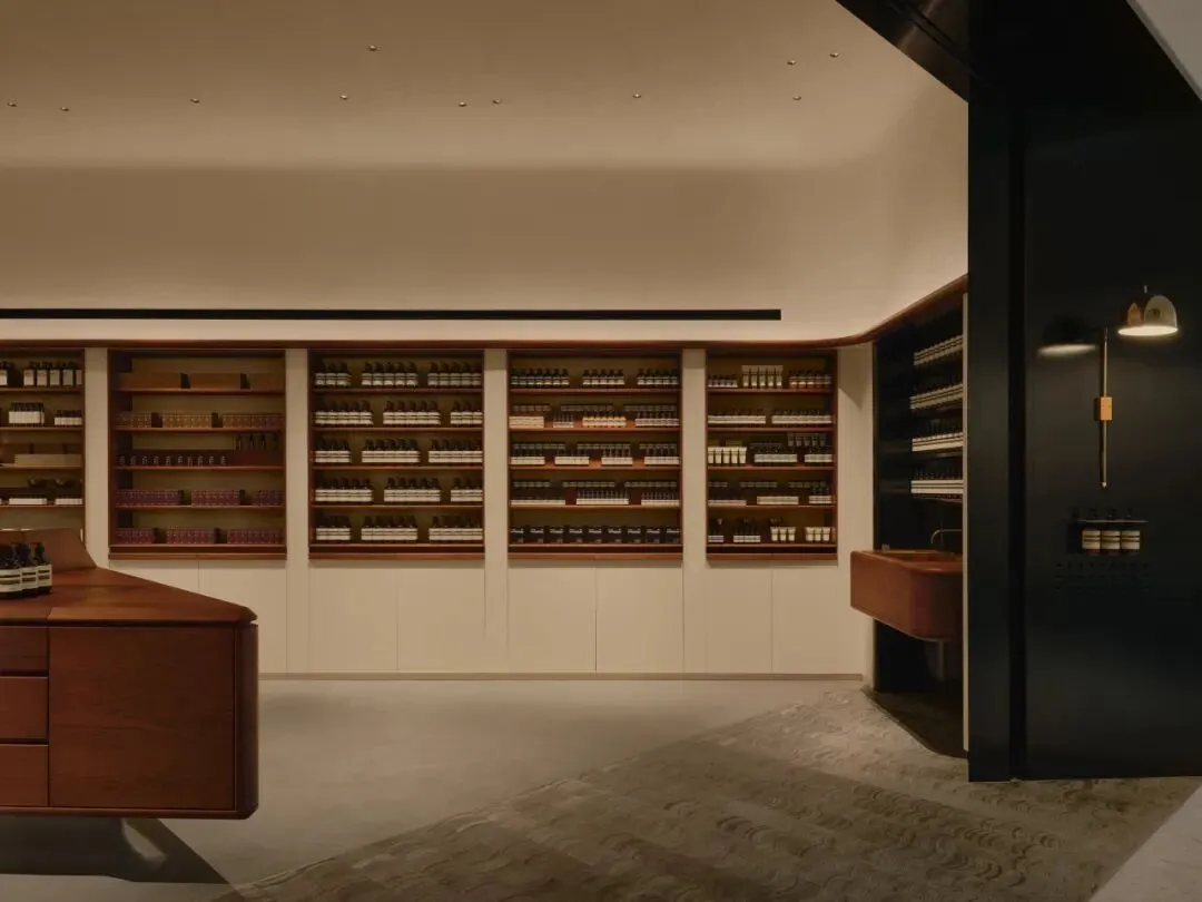这一极具实验性的巧思亦深刻影响了店内家具的设计,不仅向建筑大师贝聿铭的现代主义影响力致敬,更让Aesop伊索内部设计团队得以在不规则的原始结构上构建独特的秩序美学。