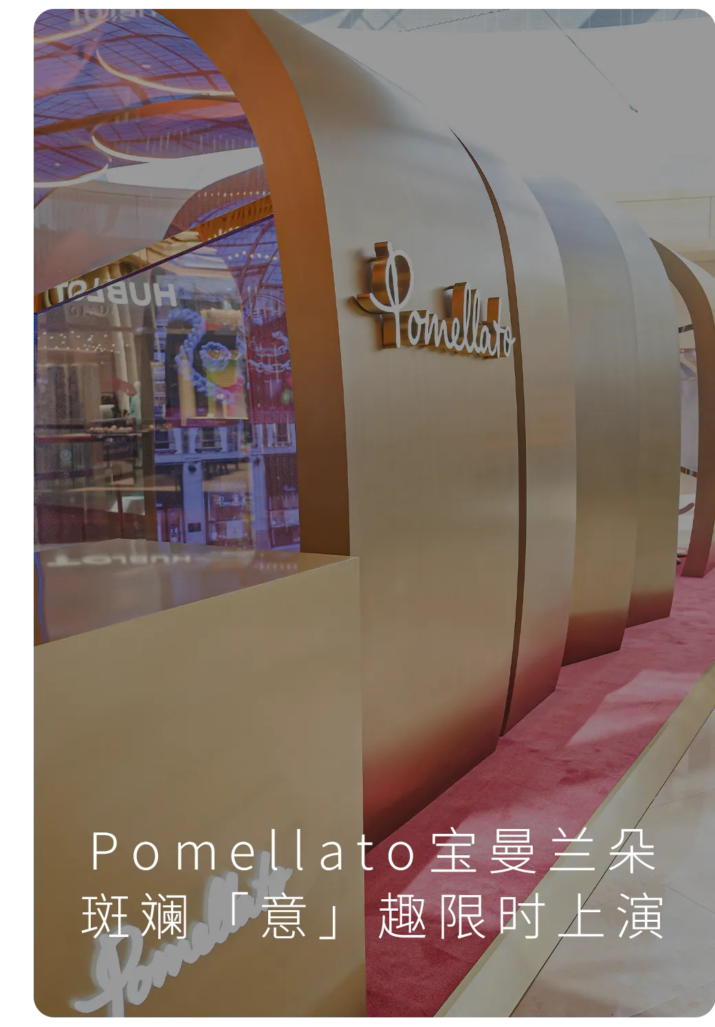 装置融合周生生YuYu 系列标志性的鱼纹为艺术语言,以「马蹄乘风 · 马到功成」、「花韵盈香 · 花开富贵」「竹节凌云 · 步步高升」、「柿灯暖岁 · 事事如意」及「鱼影循波 · 年年有余」五种祥瑞意象,串联起一场从启程到丰盈的绮丽漫游。