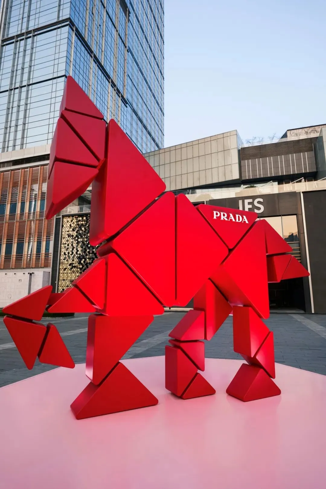 1月26日,Prada于成都国际金融中心(Chengdu IFS Mall)举办盛大活动,揭幕三角赤马(Triangle Fire Horse)限时特别装置。