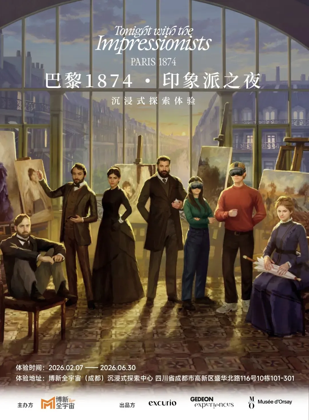 曾打造现象级沉浸式体验项目「消失的法老」「生命的纪元」的国内领先大空间沉浸式互动内容品牌——博新全宇宙,今日正式宣布:由巴黎奥赛博物馆官方出品、纪念印象派诞生150周年的沉浸式探索体验项目 「巴黎1874·印象派之夜」,将于马年春节前,2026年2月7日起,以限时展出形式登陆博新全宇宙(成都)沉浸式探索中心,为成都观众带来一场横跨艺术史、科技与沉浸体验的文化盛宴。