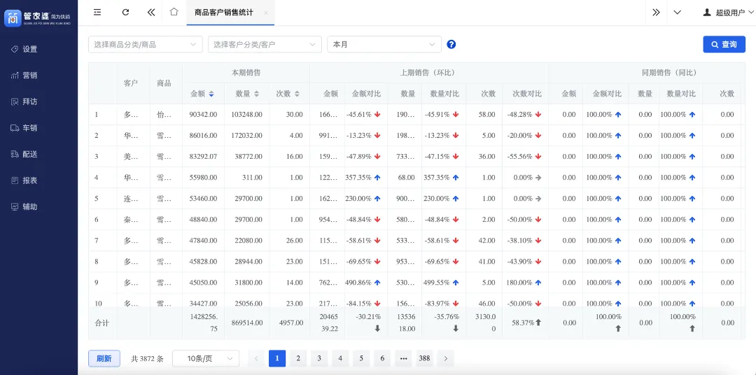 4、缺乏分析报表:拜访客户分析、绩效、同比环比对比报表等。