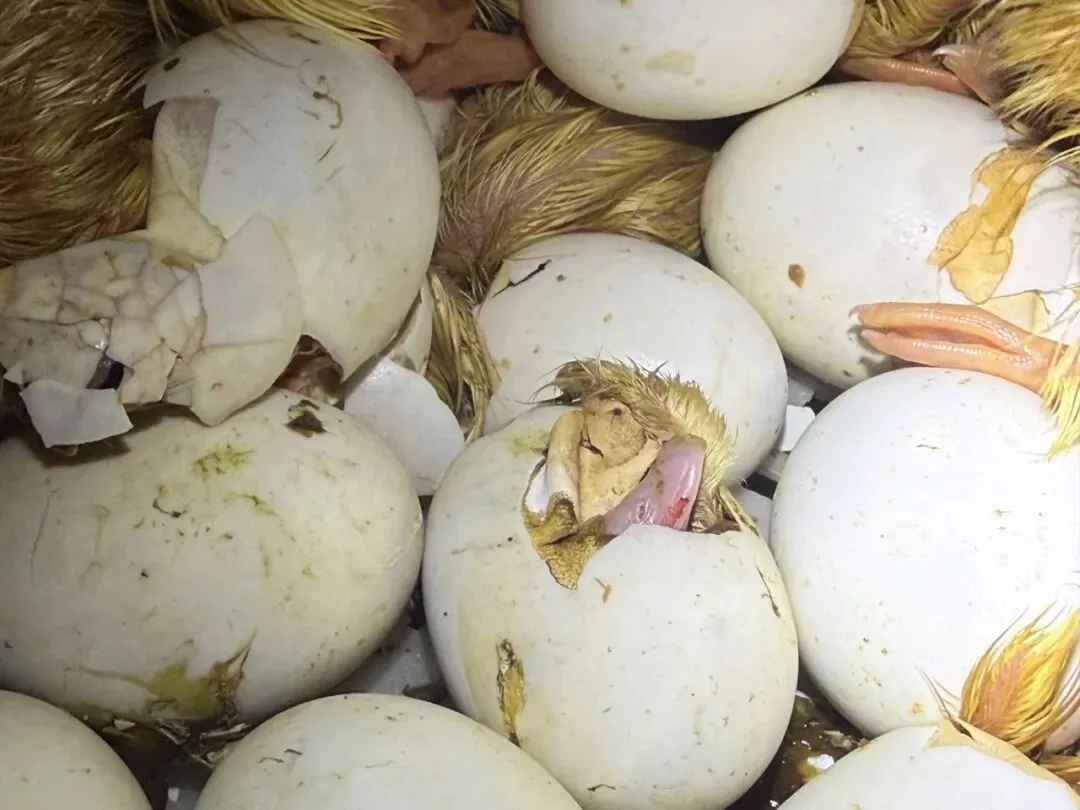 打开其中一个孵化箱,许多蛋壳上已经被啄开一个小孔,壳里小鸭子嫩黄的喙急切地探索着外部世界。