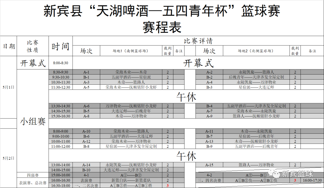 为丰富群众文体生活,增强群众身体素质,进一步推动新宾体育事业发展, 为为了丰富我县篮球爱好者文化生活,提高个人身体素质和团队合作意识,增进篮球爱好者之间的精神与文化,为新宾篮球发展,为全县比赛预热,由民间爱好者举办的新宾县“天湖啤酒——五四青年杯”篮球比赛即将开赛!