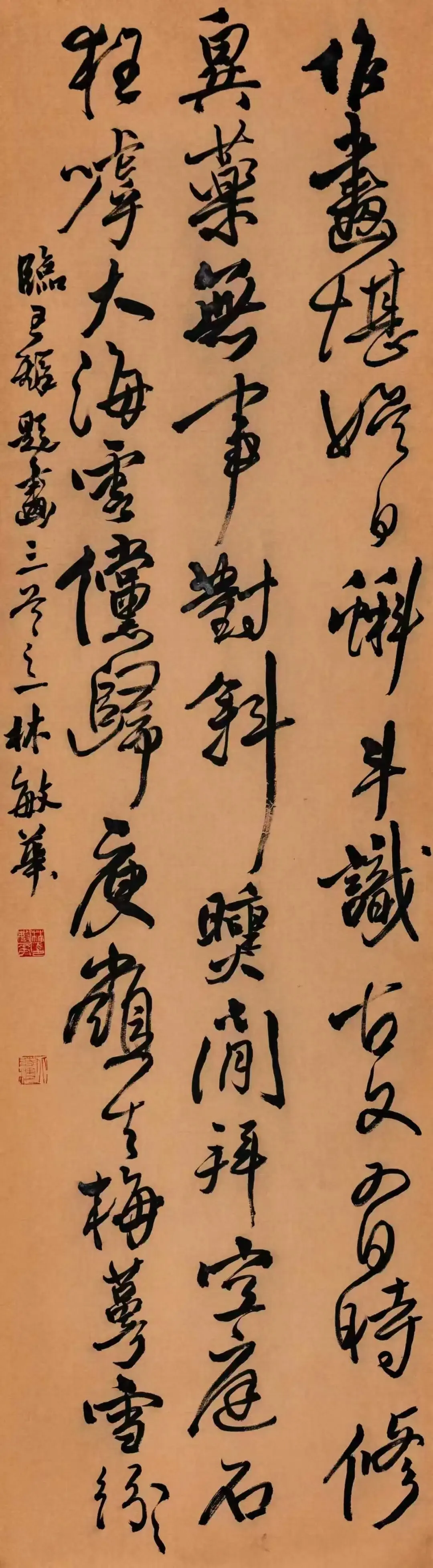 柯云东《临黄道周·答孙伯观疏林摧倦翮诗轴》
