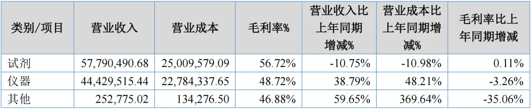 最大的亮点在海外。境外收入冲到2902万元,同比暴增80.53%。公司自己承认,这是“加大境外市场销售力度”的结果。出海这件事,很多IVD企业喊了三年,迪尔算是做出来了。仪器的日子也好过些。设备卖了4443万元,增长38.79%。这意味着医院愿意让迪尔的机器进门,装机动能在恢复。
