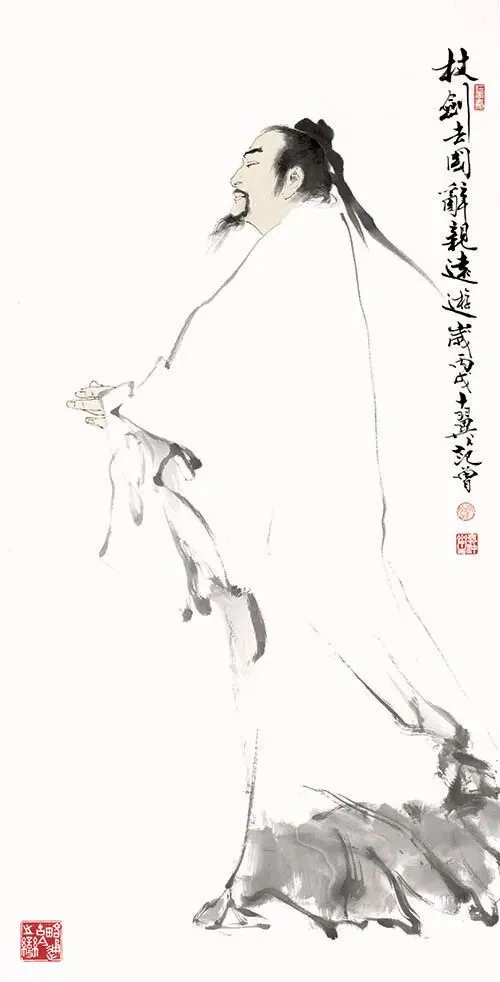 范曾的绘画融山水、花鸟、人物于一体, 主要代表画作有《灵运歌啸图》《载酒行》《竹林七贤》《广陵散》等。他4岁入学,自幼喜欢书画。提倡“回归古典、回归自然”,身体力行“以诗为魂、以书为骨”的美学原则,对中国文人画的发展有所贡献。