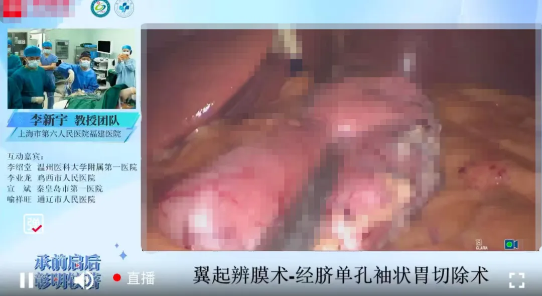 晋江市医院(上海六院福建医院)普通外科负责人,胃肠、疝与腹壁外科主任李新宇带领团队,在行经脐单孔袖状胃切除术时,成功应用E4000新一代智能手术器械,完成该耗材在中国大陆减重领域的首次临床应用,手术实况同步面向全国临床直播,一举实现“中国首用”+“亚洲首播” 双重历史性突破。