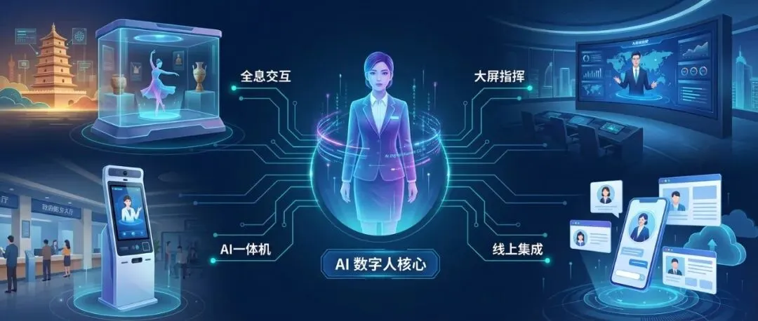 如今,数字员工已不再局限于屏幕上的虚拟形象,而是借助全息舱、一体机、大屏、网页及小程序等多种形态,全面融入线上线下场景,成为提升效率、优化体验的新型智能载体。