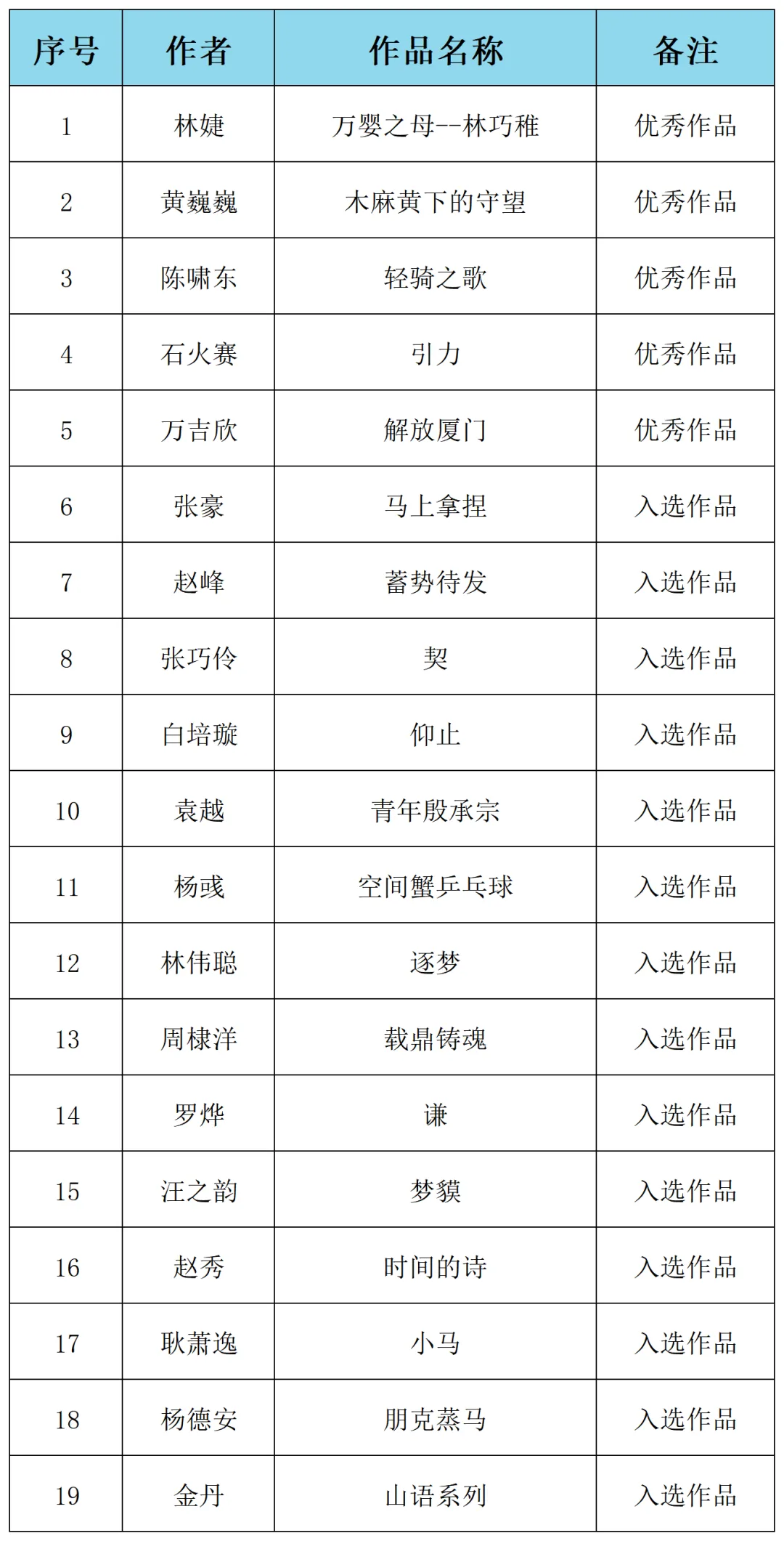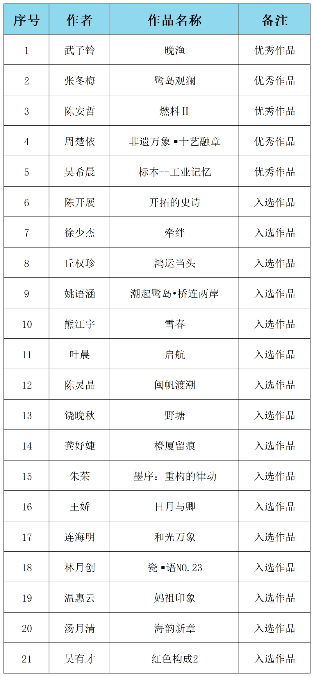 (入选名单均不分先后)