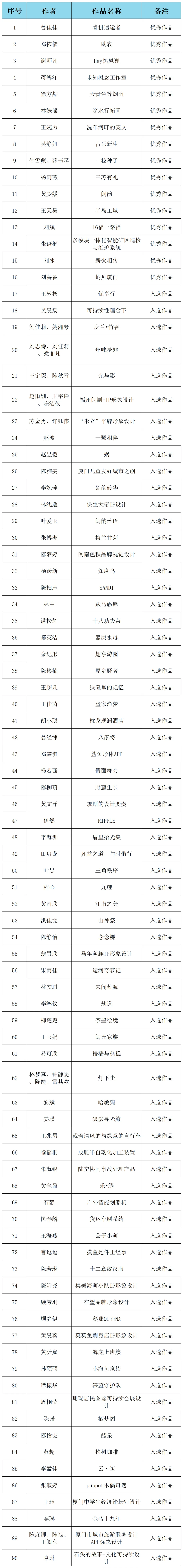 入选名单揭晓啦