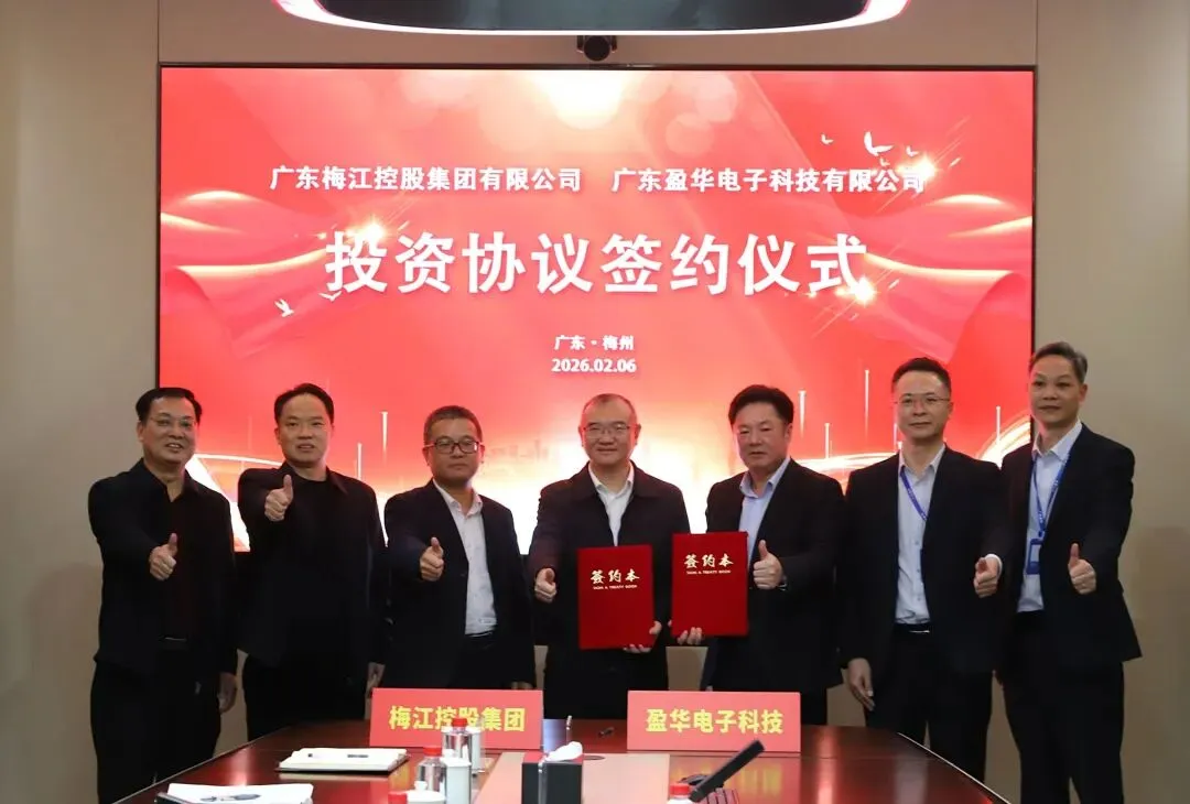 2月6日,广东盈华电子科技有限公司与广东梅江控股集团有限公司在梅江区成功签署投资合作协议,盈华科技执行董事、总经理李剑明及梅江控股董事长廖志雄分别代表双方签署投资协议。梅江区委书记丘炀参加仪式并致辞,梅江区委常委、区政府党组副书记、副区长,梅州经开区管委会(嘉应新区管委会)党组副书记陈志文主持仪式。梅州经开区管委会副主任杨等新,梅江区发展和改革局、区科工商务局、区财政局等相关部门负责同志,盈华电子科技及梅江控股管理团队共同出席签约仪式。