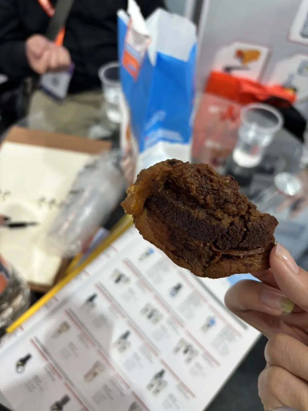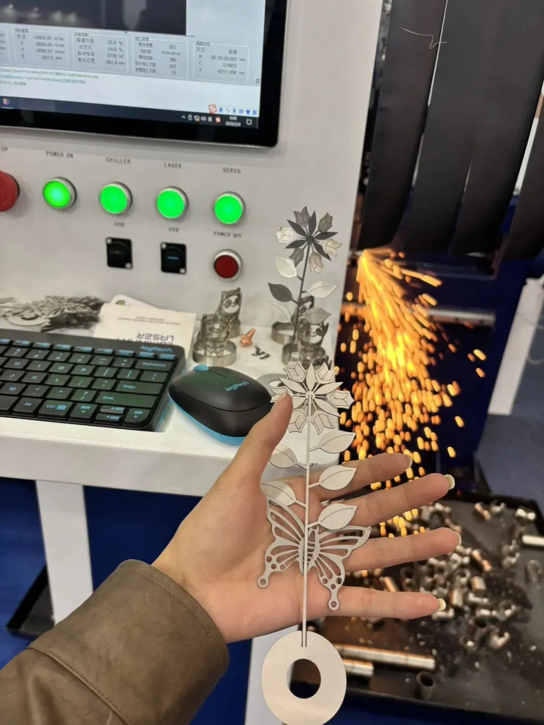 我最大的特点就是总能从大家看来枯燥乏味的日常探索到生活的乐趣,比如旁边是大型机台的展,在现场生产很小的装饰品,我也过去凑了下热闹