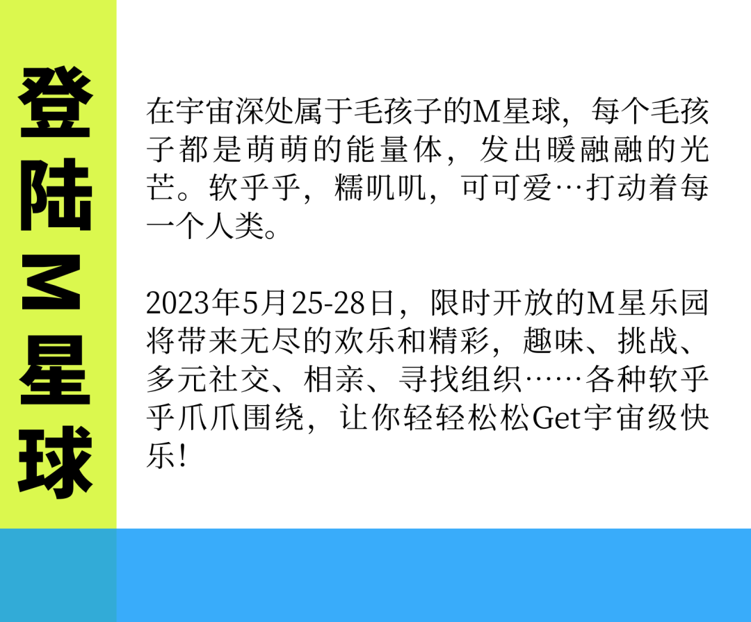 游戏、音乐、露营、饮品、美食…超多美好元素加上毛团子,一起组成前所未有又多彩缤纷的M星乐园。